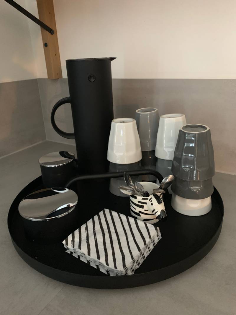 Omdat we onze jaren '70 woning compleet aan het restylen zijn in een moderne look proberen we in huis een moderne, rustige en warme sfeer te brengen. Het huis moet heel gezellig zijn, maar ook super praktisch. Maar wat ik ook belangrijk vind is dat er allemaal leuke kunstopbjecten staan en hangen waar je iedere keer weer blij van wordt als je daar naar kijkt. As je door het huis loopt, loop je als het ware tegen kleine tentoonstellinkjes aan en daar kan ik iedere dag weer van genieten. In de keuken vind ik het fantastisch dat we zulke mooie designobjecten hebben kunen vinden die ook nog eens mega praktisch zijn en die tegen een stootje kunnen!