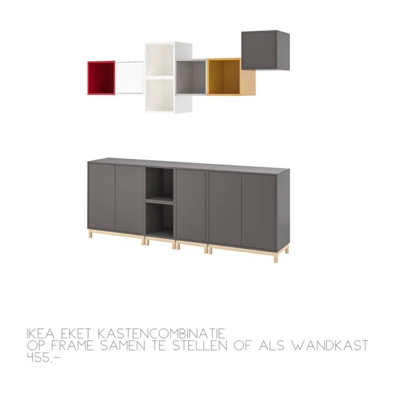 Totdat ik de Eket tegenkwam in de Ikeagids, want dit begint wel verdacht veel te lijken op de Stacked. Natuurlijk zijn er erg veel verschillen, maar het idee erachter komt overeen. Je bouwt je eigen kast op vanaf een frame en kunt hier helemaal op los gaan qua kleuren, vormen en verschillende type kastjes of je maakt er aan de wand een vrolijke en gezellige boel van. Kortom... beginnen met puzzelen maar!
