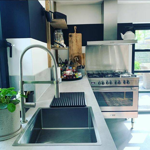 Al met al hebben we de keuken alweer een tijdje in gebruik en we zijn er nog steeds zo blij mee dat we geen grote investering hebben gedaan in een splinternieuwe keuken! Het is natuurlijk wel een heel groot voordeel dat Mike zelf zo enorm handig en heel veel dingen naar onze eigen wens kan maken. Maar ook met het inschakelen van bijvoorbeeld een meubelmaker kan je alsnog goedkoper uit zijn. Nu nog speur ik Marktplaats wel eens af naar keukens, wat staan er regelmatig prachtexemplaren op die nieuw gauw rond de €15.000-20.000 euro kosten en op Marktplaats soms voor een paar duizend euro af te halen zijn. Mocht je dus een nieuwe keuken overwegen en een beetje handig zijn, raad ik je echt aan er zelf een mix van te maken met een combinatie van Marktplaats, eventueel Ikea en nieuw, geïnspireerd op je eigen creatieve ideeën! Onderaan de streep ben je zoveel minder geld kwijt met hetzelfde eindresultaat en een blij gevoel!