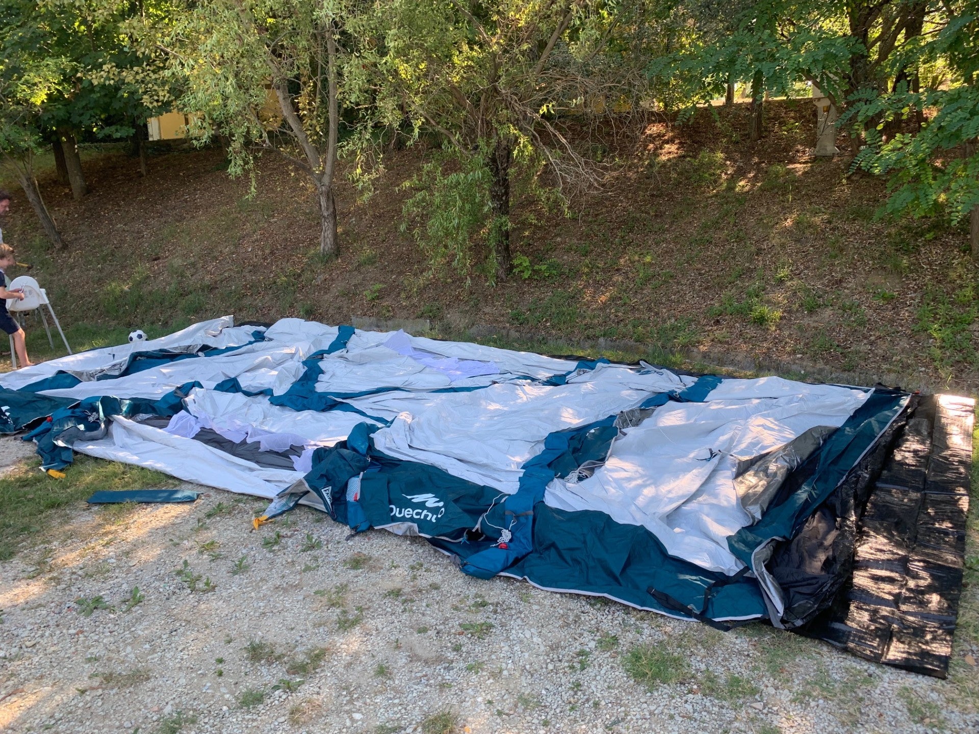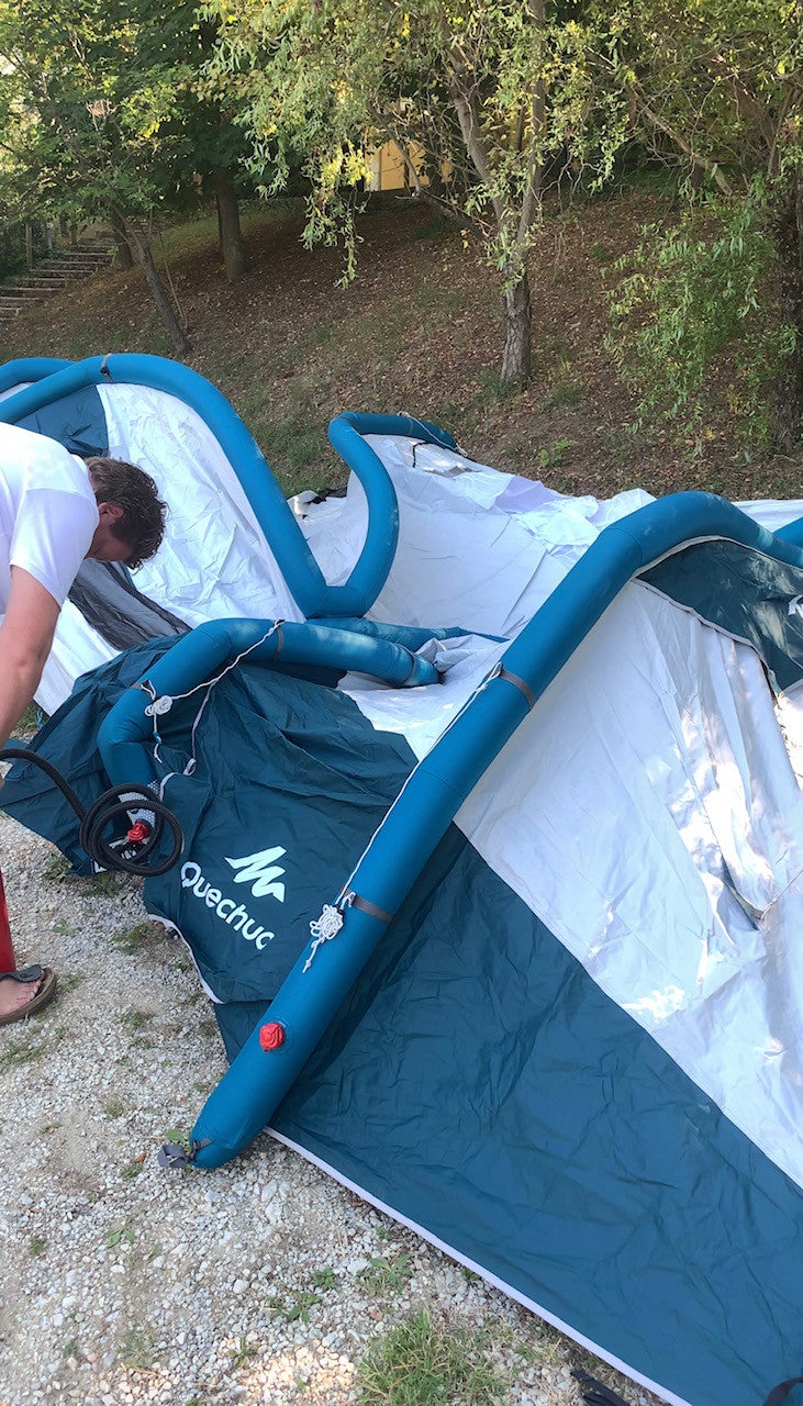 Rond 16.15 uur zijn we op dinsdag 23 juli op de camping in San Marino aangekomen. Na het uitzoeken van een grote plek (met voldoende schaduw!) begint dan de uitdaging. Namelijk het opzetten van onze nieuwe tent: de Quechua air seconds 8.4 fresh & black die we gekocht hebben bij de Decathlon.